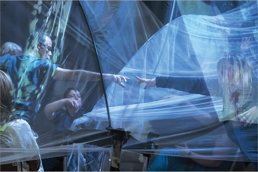 A collaboration with Edge Hill University and the University of Salford, UK, with funding from Arts Council England, this co-produced piece was developed by artists and participants and delivered as a therapeutic group for mental health service users based in the community in the north of Liverpool. The resulting immersive performance entitled Together Un/Tethered toured the country. Its aim has been to demystify the therapeutic process in arts therapies practice and to invite wider audiences to have a proxy experience of the therapeutic journey for themselves. Arts for the Blues, developed by artists, therapists, and arts therapists from the two universities, addresses the diverse needs of children and adults, following Medical Research Council guidelines, aspiring to develop sufficient critical mass to enable systemic changes in services and provide universally good-quality practices. It is currently used with children, adults, and staff in hospitals, schools, and charities in the UK, Europe, and further afield, including India, Nepal, and Bangladesh.
