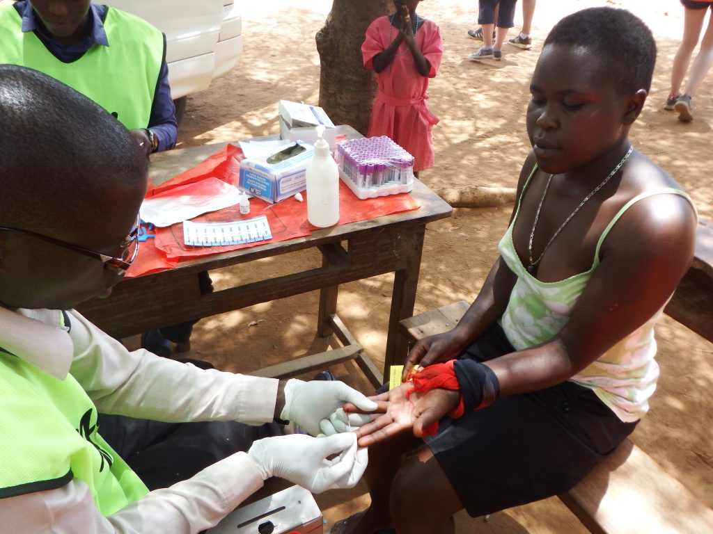 Taking a small drop of blood for HIV testing